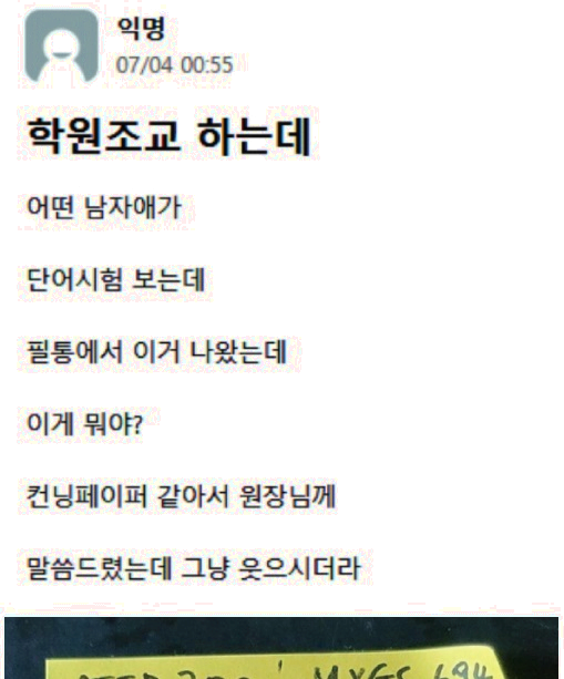 학원 조교가 남학생 필통에서 발견한 종이의 충격적인 정체ㄷㄷ
