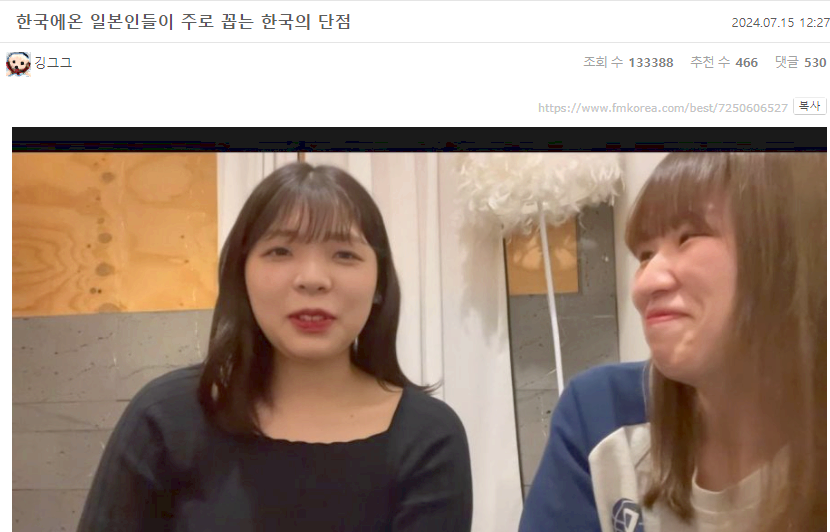 요즘 한국에온 일본인들이 주로 꼽는 충격적인 한국의 단점ㄷㄷ