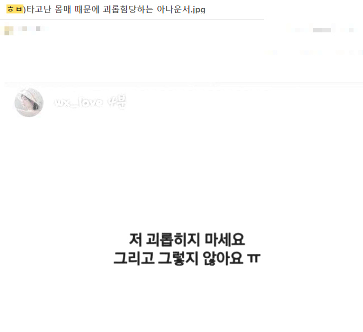 타고난 몸매 때문에 괴롭힘당하는 아나운서 ..ㅗㅜㅑ
