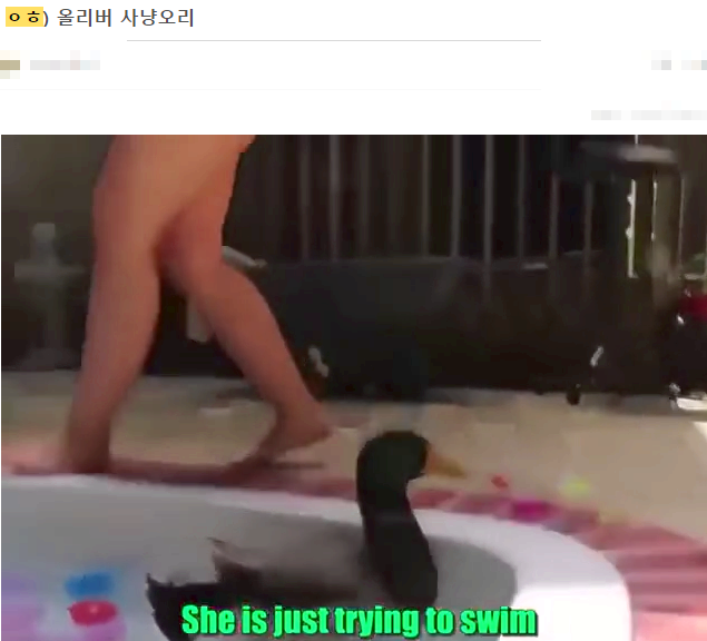 수영장에 들어온 여자를 사냥하는 오리ㄷㄷ