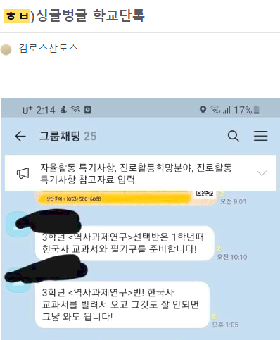 나만 아니면 되는 싱글벙글 학교단톡 레전드 ㄷㄷ