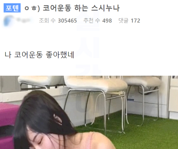 현재 남초에서 반응 터진 코어 운동 하는 스시눈나..ㅗㅜㅑ