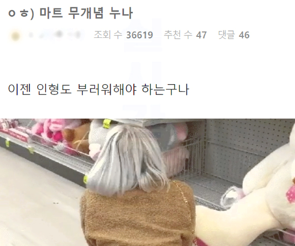 최근 남초커뮤에서 난리 난 마트 무개념 누나 클라쓰..ㅗㅜㅑ