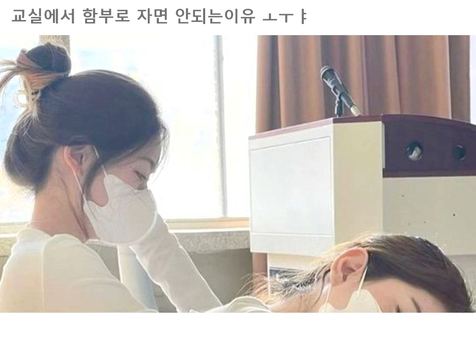 강의실 수업할 때 자면 목이 아픈 여학생ㄷㄷ