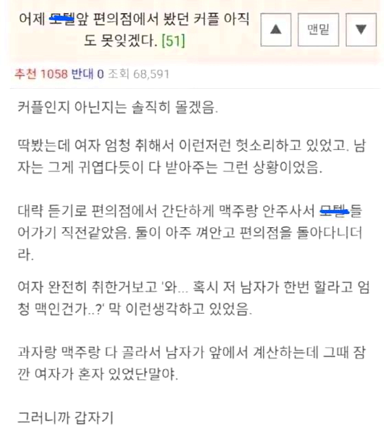 모ㅌ 앞에서 본 커플을 잊을 수 없는 충격적인 이유ㄷㄷ