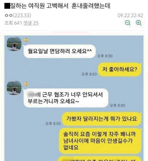 갑ㅈ하는 여직원 고백해서 혼내 주려고 했는데 이상하다 ㄷㄷ