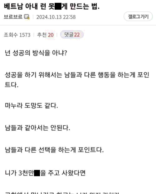 디시인이 말하는 베트남 아내가 도망 못 가게 하는 충격적인 방법ㄷㄷ