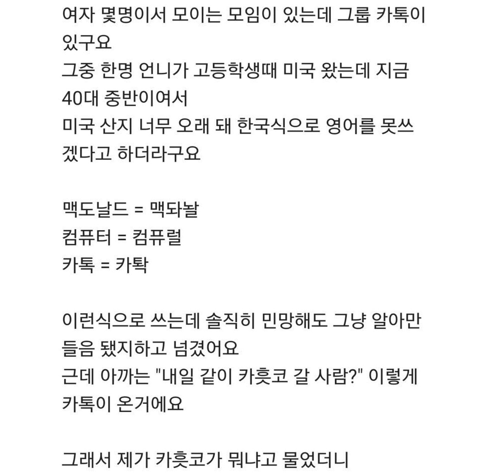 미국에 오래 살아서 한국식 영어를 못 쓰는 여자때문에 힘듬 ㅋㅋ