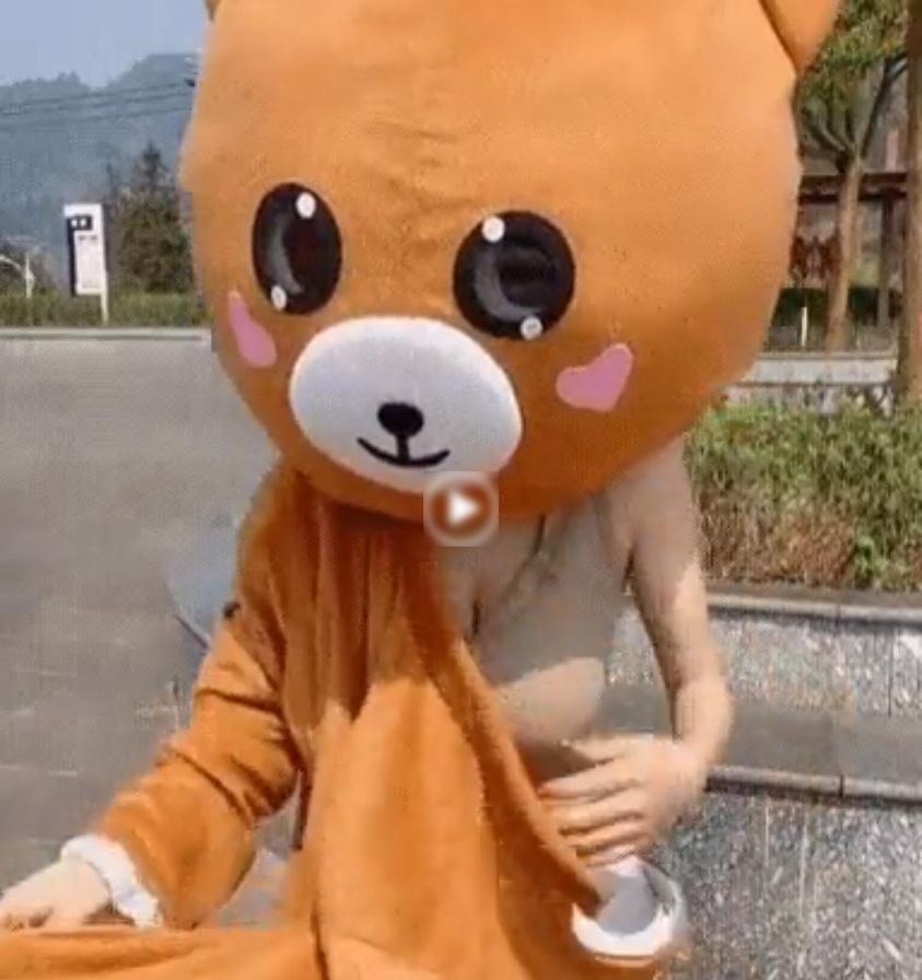 더운 날씨에 고생하는 인형탈 알바생 누나.mp4