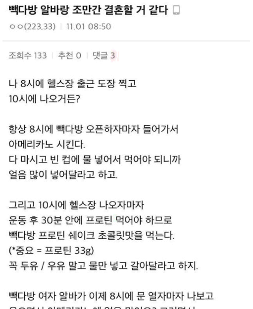 빽다방 알바랑 조만간 결혼할 거 같다는 디시인ㄷㄷ