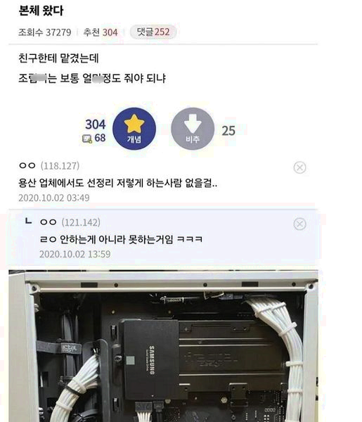 친구가 컴퓨터 선정리 해줫는데 수준이 ㄷㄷ